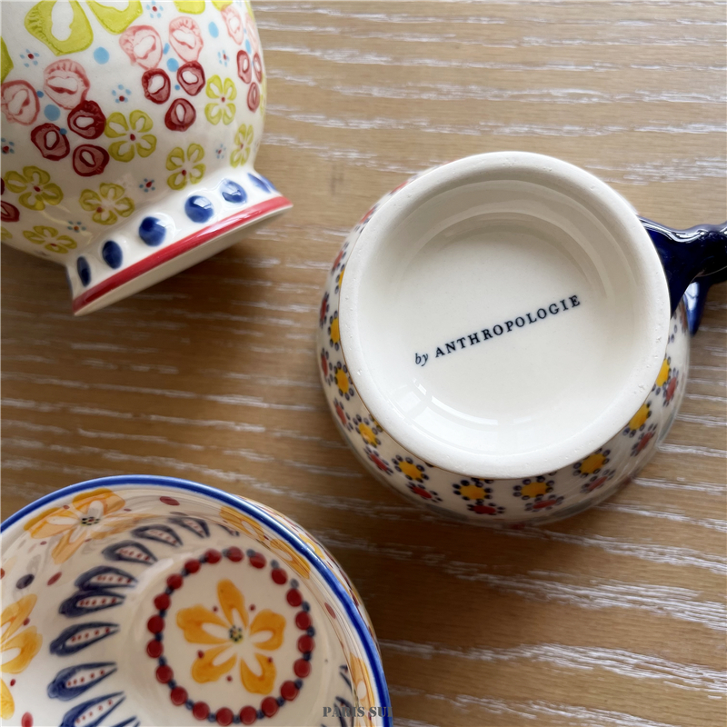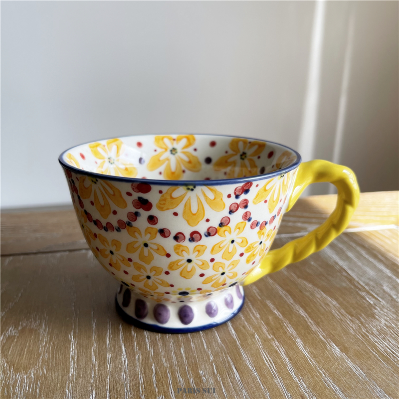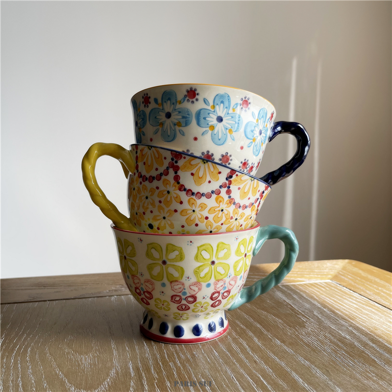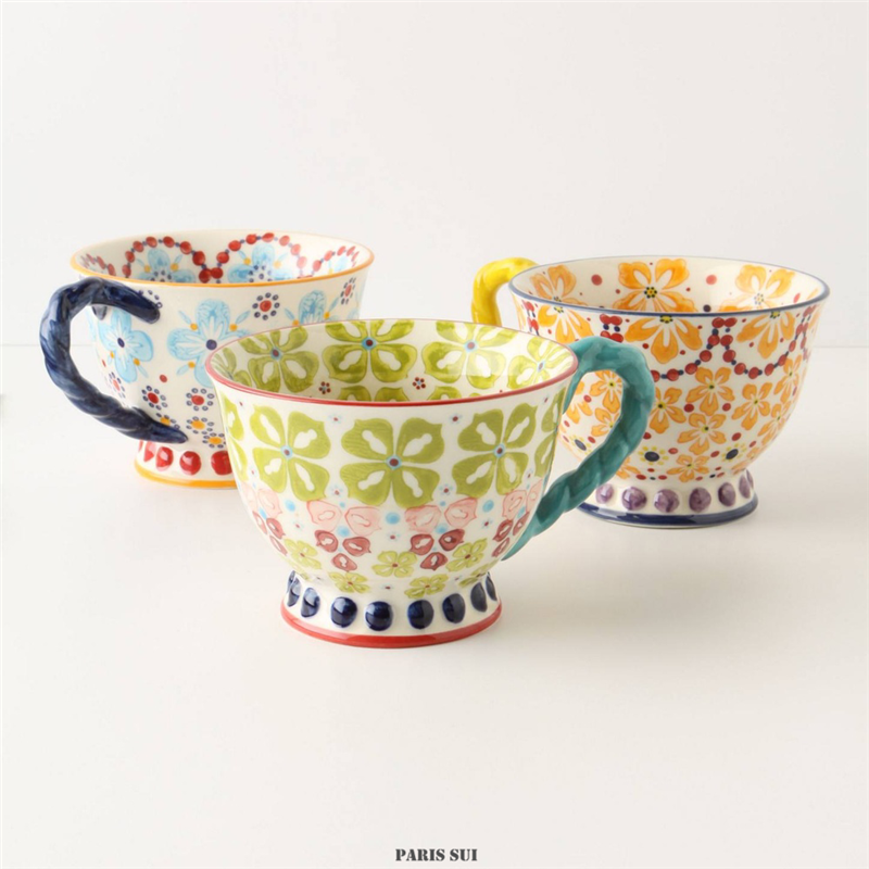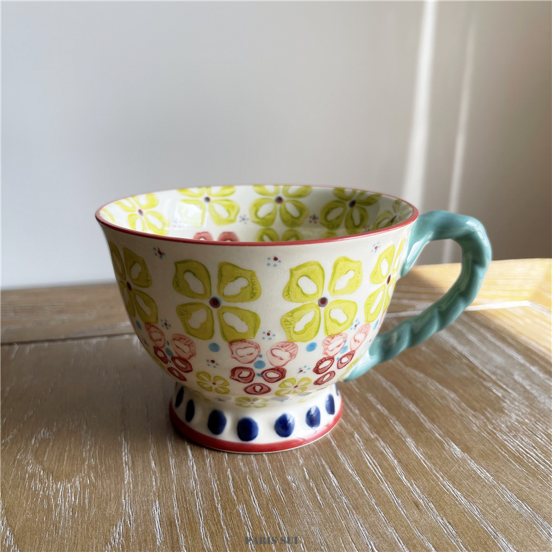 Exported to USA A * N Hand Painted Ethnic Style Ceramic Mug/Flower Goblet/Milk Oatmeal Cup Breakfast Cup