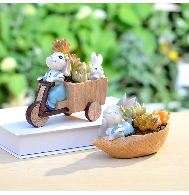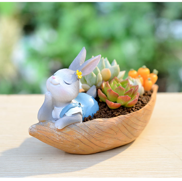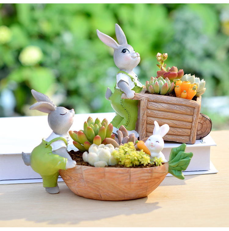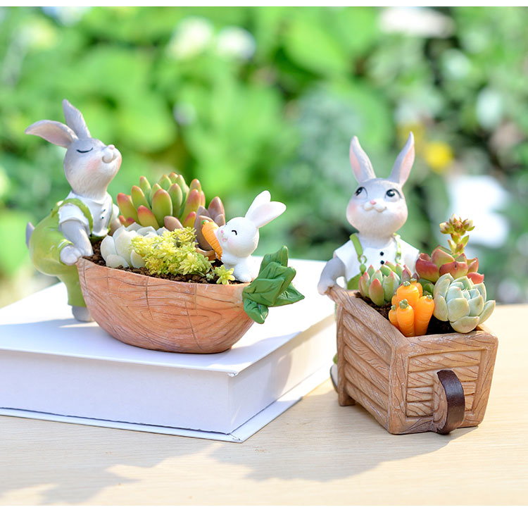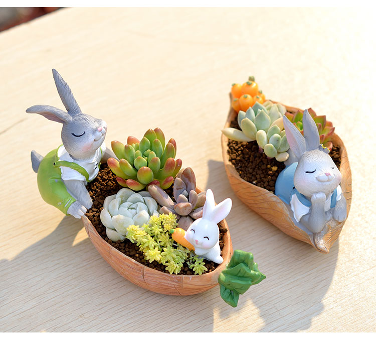 Fun Gardening Creative Cartoon Succulents Small Cute Rabbit Flower Pot Meat Combined Green Plants Home Decoration