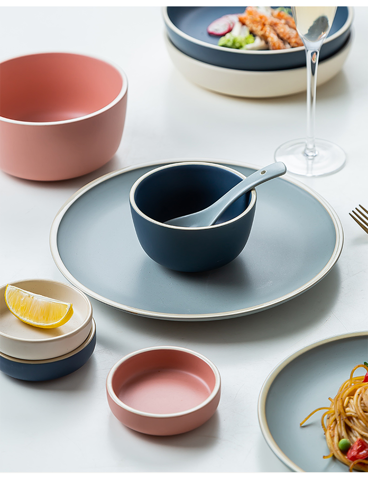 Fuqijing 752 Morandi Nordic Bowls and Dishes Tableware Set Household Bowl Plate Creative Household Combination Bowl and Chopsticks Set
