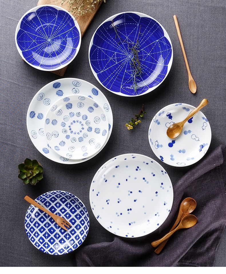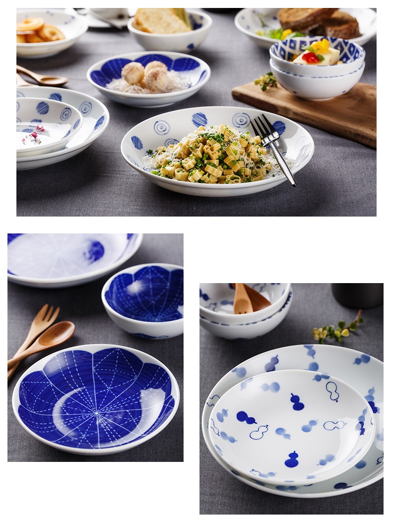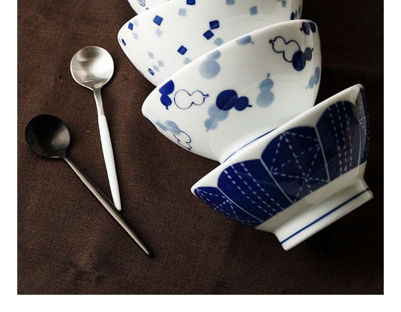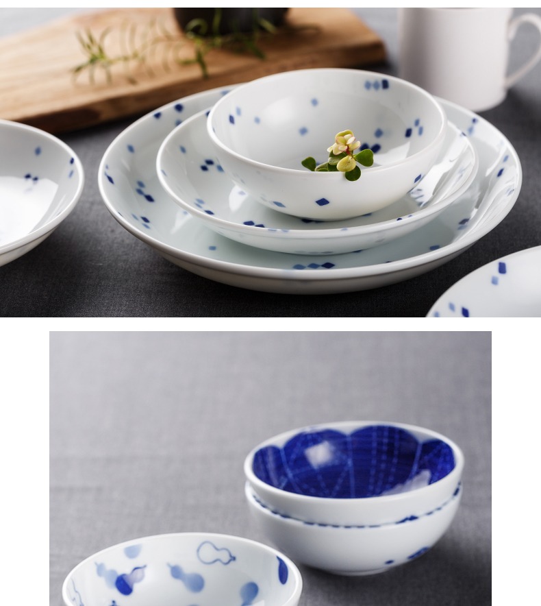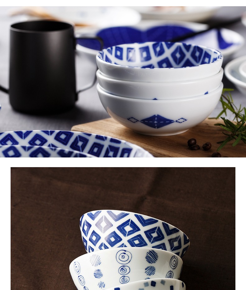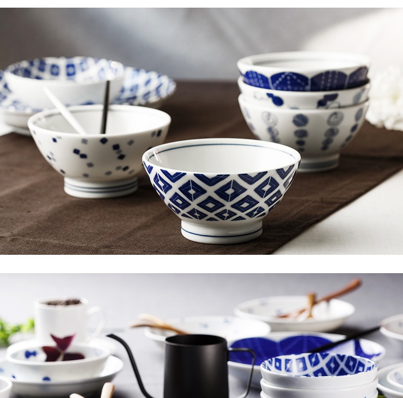 Japanese Import Simplicity Modern Pattern Underglaze Home Ceramic Rice Bowl Tall Bowl Anti-Scald Bowl Plate Dish