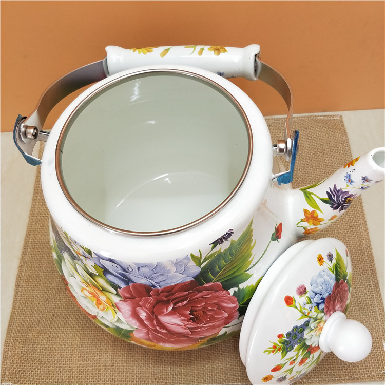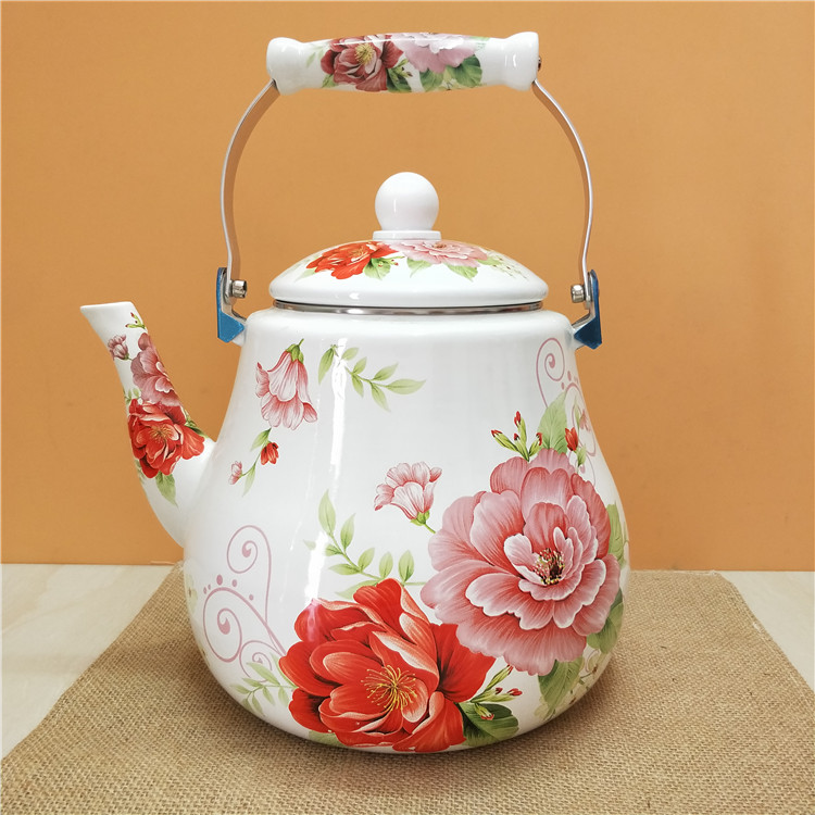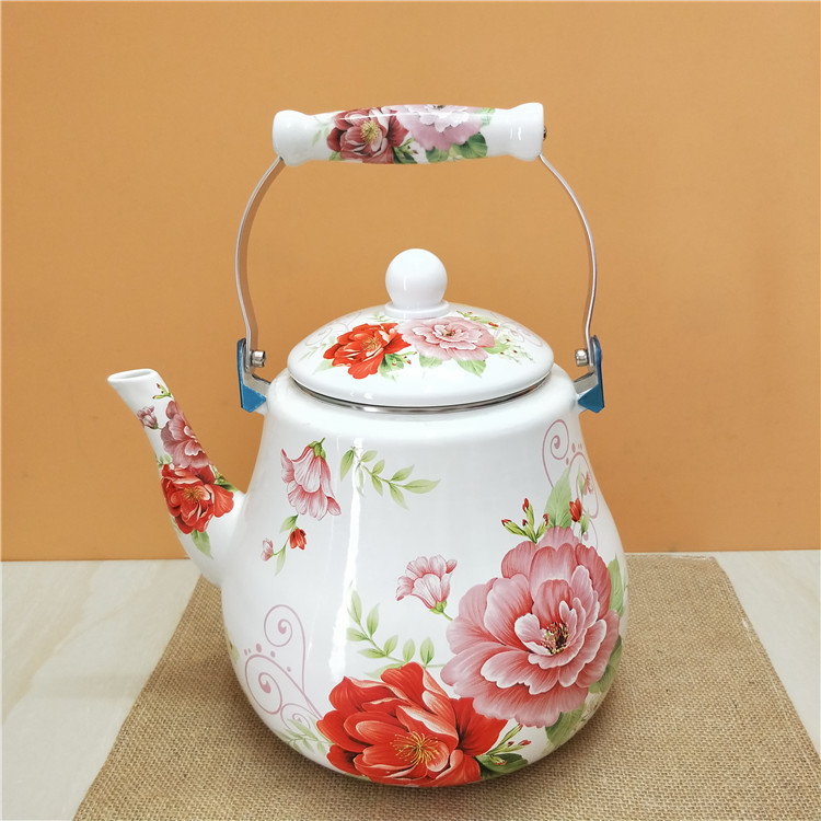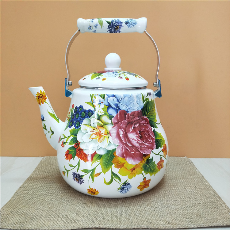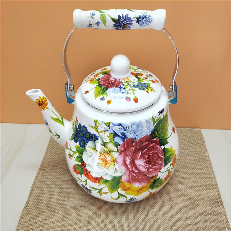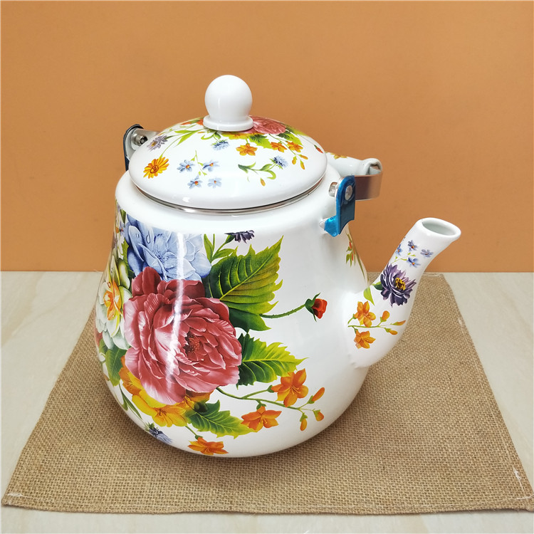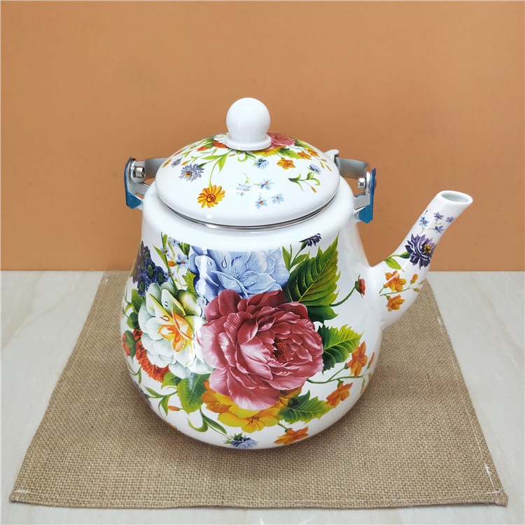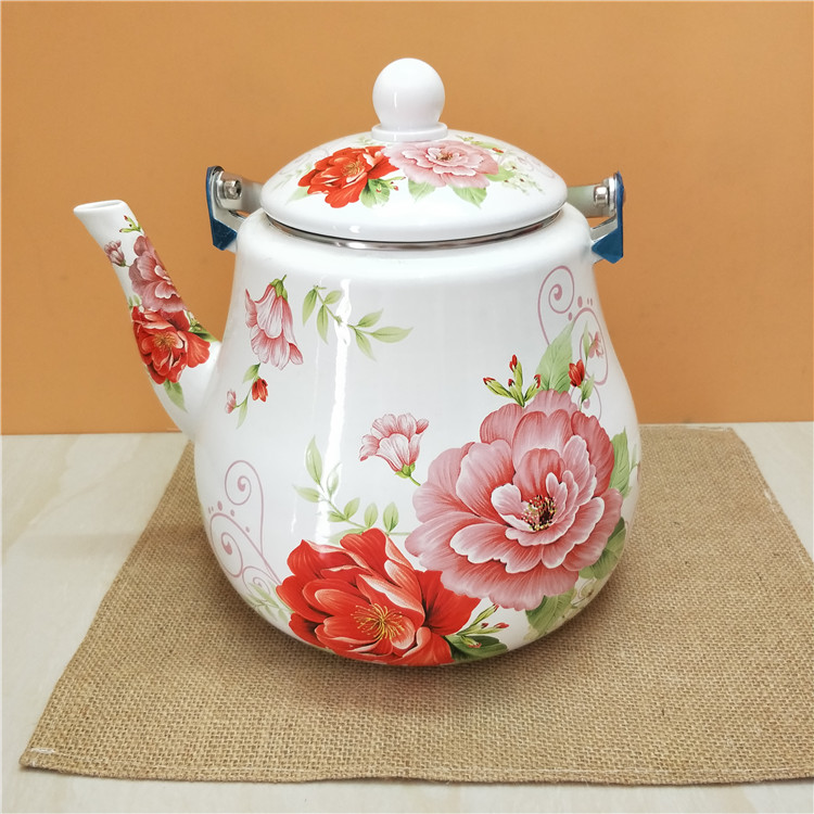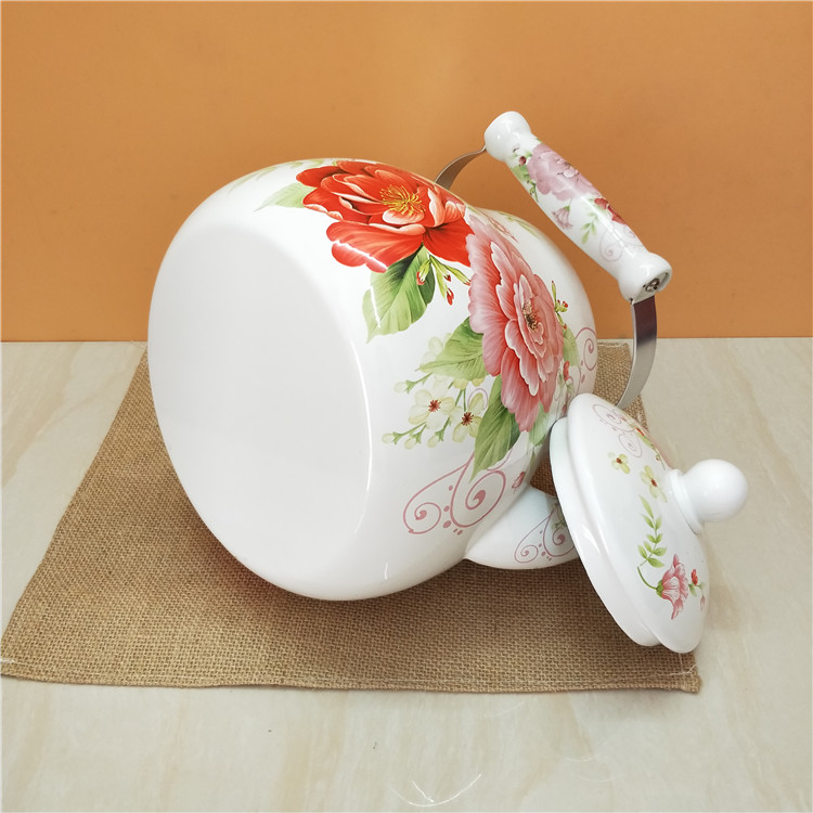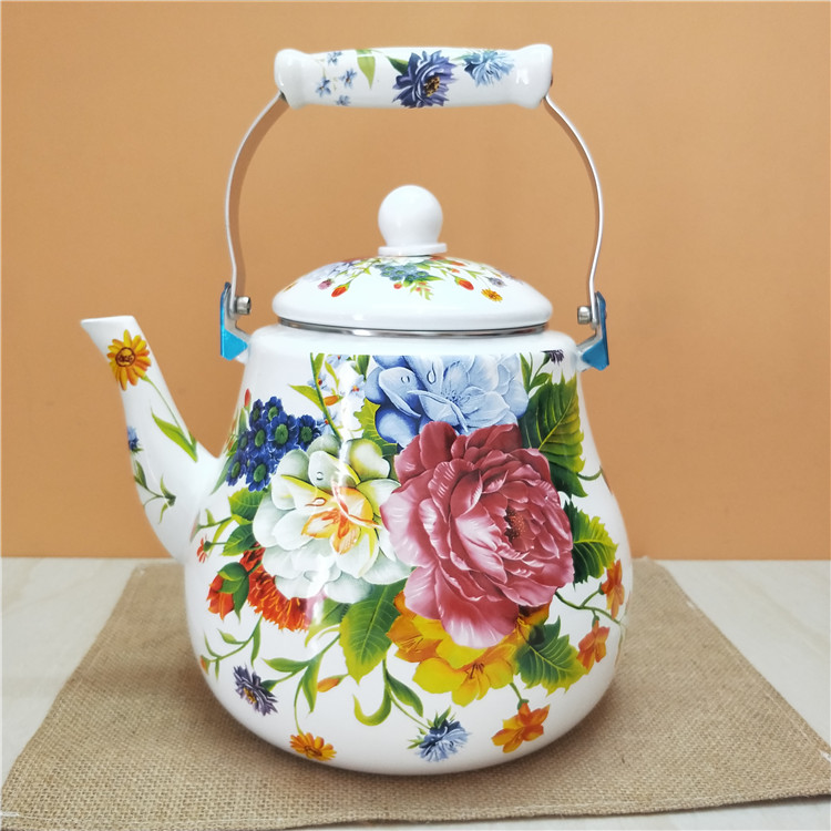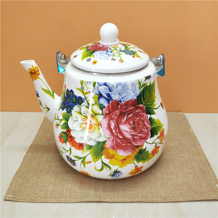 Large Capacity Thickened Enamel Large Water Bottle Milk Tea Pot Flat Pot Enamel Full Flower Induction Cooker Universal Teapot Water Pitcher