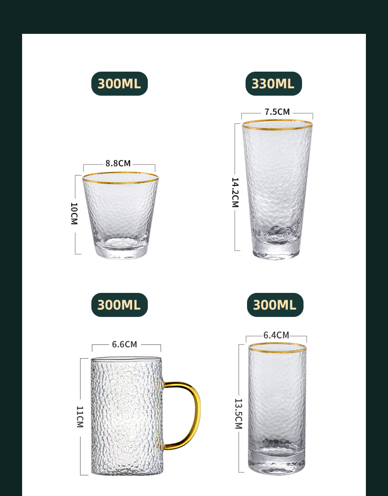 Light Luxury Hammered Pattern Glass with Handle Heat-Resistant Water Cup Kettle Tea Cup Drinking Cup Set Home Living Room Hospitality