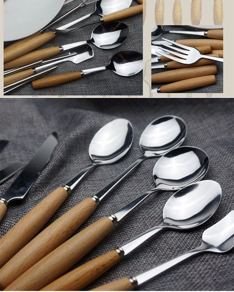 Nordic Beech Handle Stainless Steel Knife and Forks Tableware Western Food/Steak Knife Spork Coffee Dessert Spoon Fruit Spork