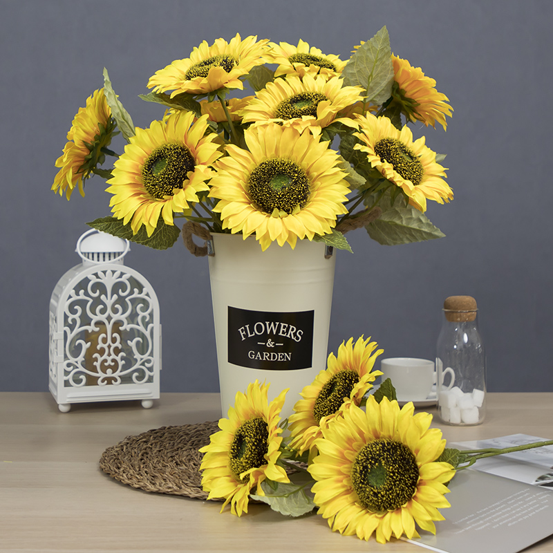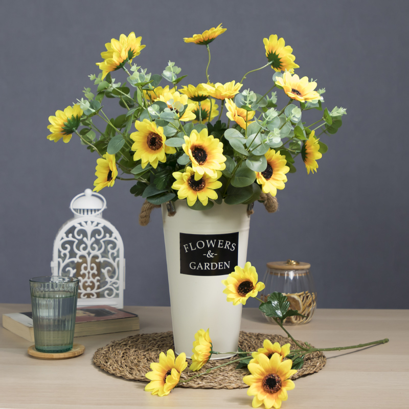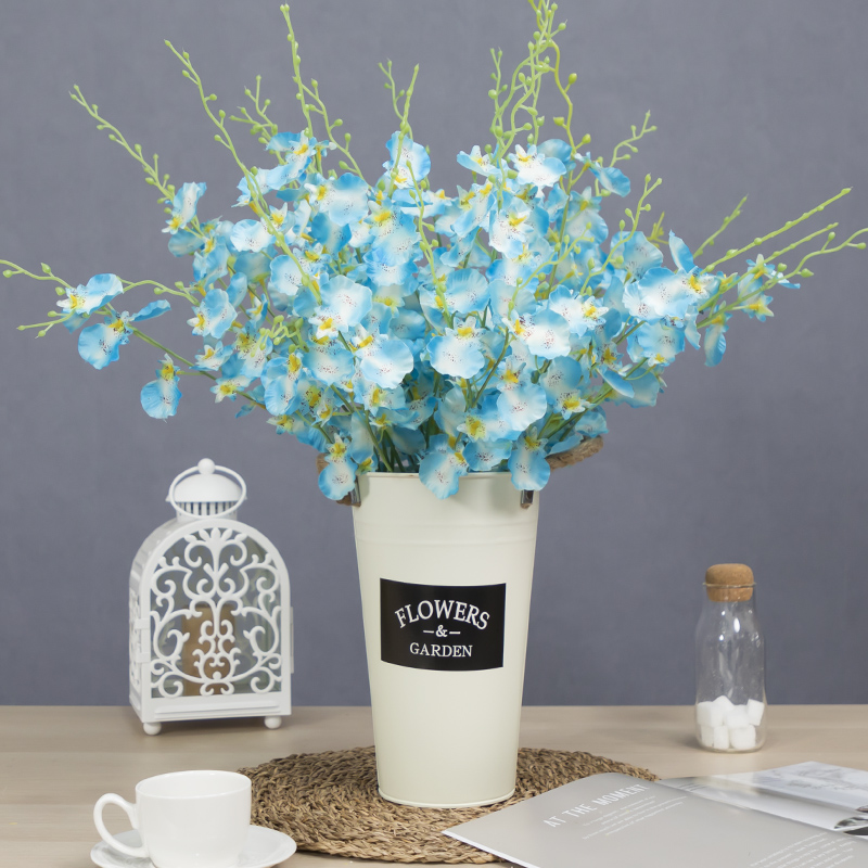 Silk Flower Dried Flower Flower Arranging Bucket Creative Indoor Home Simulation Fake Flower Pastoral Style Window Decoration Iron Bucket Decoration