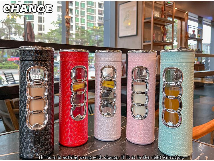 Summer Ins Simple Heat Resistance Glass Business Men and Women Fresh Anti-Scald with Tea Compartment Portable Adult Car Water Cup